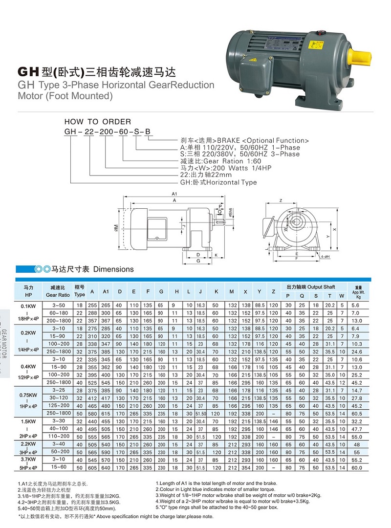名稱 :GH型交流齒輪減速馬達